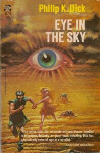 At this point you’re likely getting tired of hearing about Philip K. Dick. (More likely you’re not reading these words at all by this point. Statistically, you don’t even know they exist.) But here I am, and here we are. By this time I decided to re-read all the PKD novels in publication order, or thereabouts (no need for foolish consistency). Which brought me back to Eye In The Sky. Which reminded me of just what Dick is so expert at that no-one else seems ever to do as well: getting inside the head (or seeming to) of multiple characters. Though this book also highlights that this ability, his specialty, seems best when applied to deeply flawed psyches. A wonderfully realized conceit, for all the obvious rough edges and compromises with the 1950s.